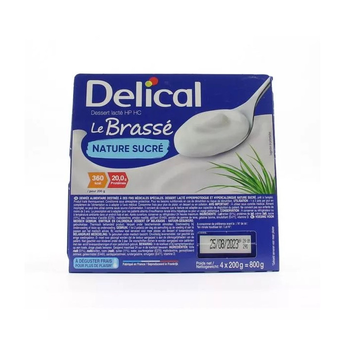 Le brassé HP/HC nature sucré Delical correspond à un dessert lacté riche indiqué pour les personnes souffrant de dénutrition ou risquant d'être concernée par cet état pathologique. Il est hyperprotidique et hypercalorique dans le but de compléter les apports journaliers et d'éviter que des carences ne fragilisent l'organisme et son système immunitaire. La dénutrition touche davantage le sujet âgé, les personnes atteintes de cancer ou souffrant de la maladie d'Alzheimer et qui ont du mal à s'alimenter suffisamment ou du moins à assimiler les nutriments essentiels.