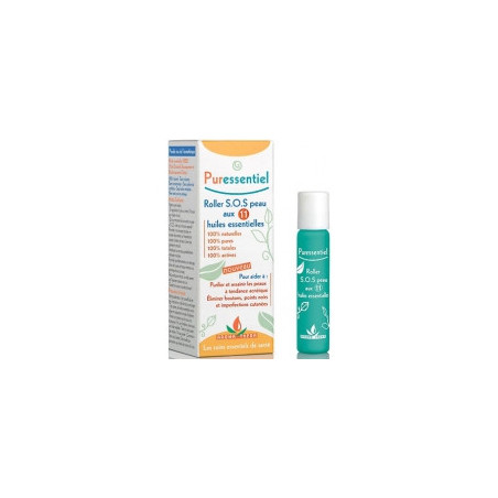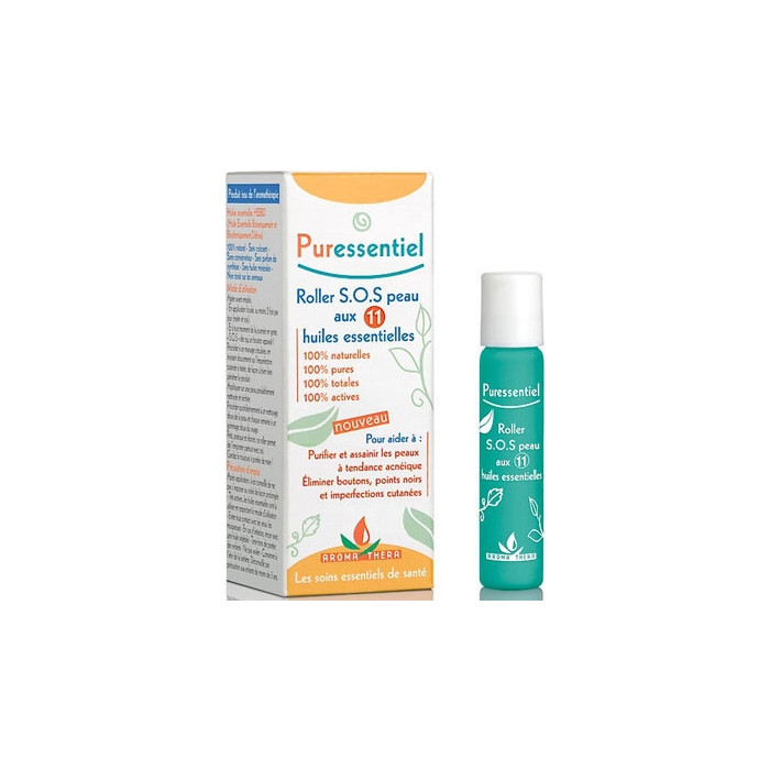 SOS Peau Roller aux 11 huiles essentielles aide à purifier les peaux à tendance acnéiques en aidant à éliminer les boutons.