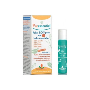 SOS Peau Roller aux 11 huiles essentielles possède des propriétés astringentes, assainissantes et antibactériennes qui permettent d'apporter une aide pour lutter contre les boutons d'acné et ainsi purifier les peaux jeunes à problèmes. Actifs 100% d'origine naturelle, sans colorant, sans conservateur, sans parfum de synthèse, sans huile minérale.