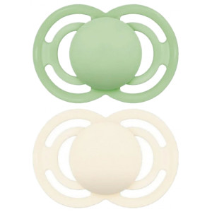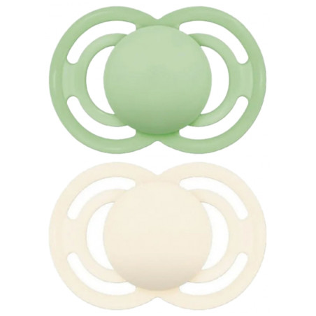 MAM 2 Sucettes Perfect Tendance 6 Mois et + - Couleur : Vert et Blanc sont des sucettes anatomiques conçues pour réduire le risque de mauvais alignement des dents et permettre le bon développement bucco-dentaire.
