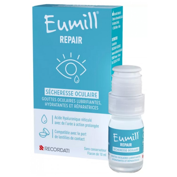 Eumill Repair Sécheresse Oculaire 10 ml est conçu pour soulager la sécheresse oculaire intense et persistante, ainsi que le larmoiement anormal causé par des conditions telles que la blépharite chronique ou la chirurgie oculaire.