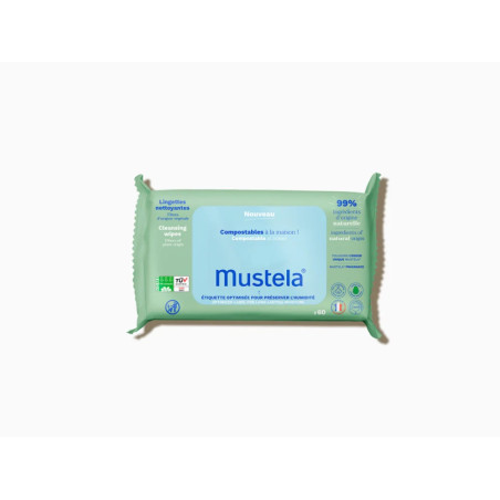 MUSTELA - Lingettes Nettoyantes Compostables Avec Parfum - 60 Lingettes