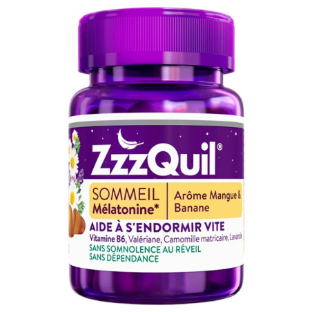 ZzzQuil Sommeil Mangue & Banane 30 Gummies est un complément alimentaire sommeil à base de Mélatonine.