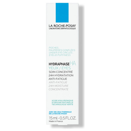 La Roche-Posay Hydraphase HA Yeux 15 ml est un soin concentré anti-fatigue pour les yeux à l'acide hyaluronique, puissant actif hydratant, combiné à l'Eau Thermale de la Roche-Posay à haute concentration. Il réhydrate intensément le contour des yeux en infusant la peau en eau. Associé à la caféine, ils dégonflent l'apparence des poches.